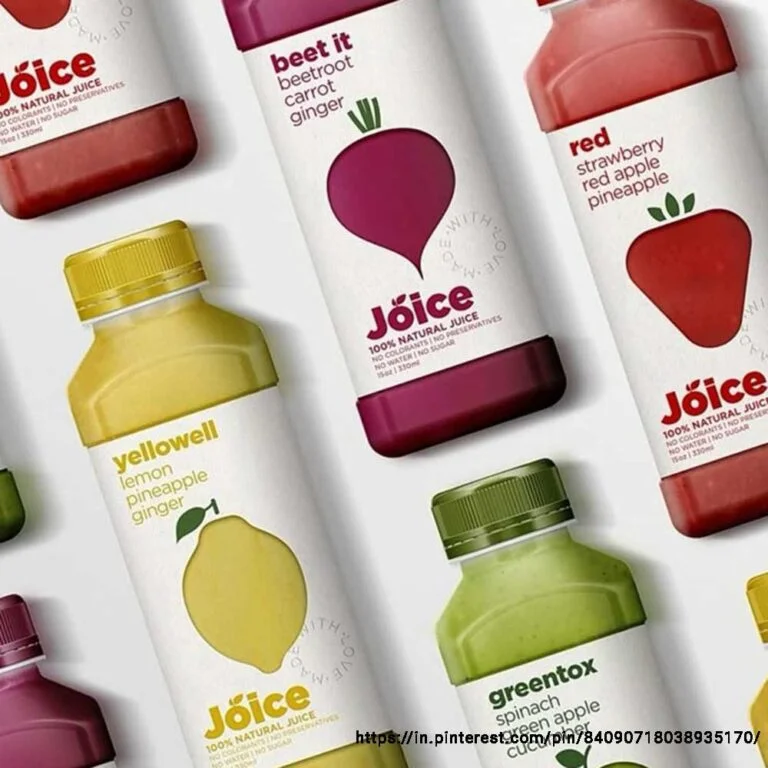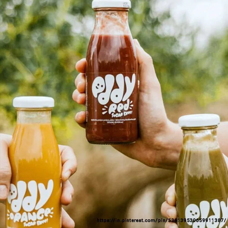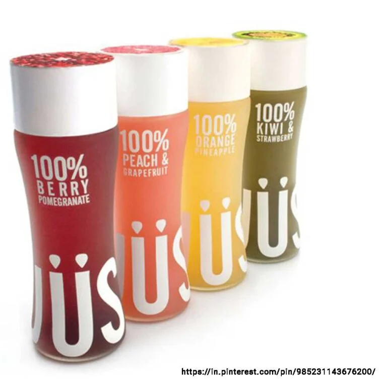 You may even get into nostalgic marketing and play with visual elements, but with a modern yet nostalgic twist that would give people a sense of joy. Since the packaging could be clear enough to show the inside product out, add a splash of colour to make your juice packaging design pop.